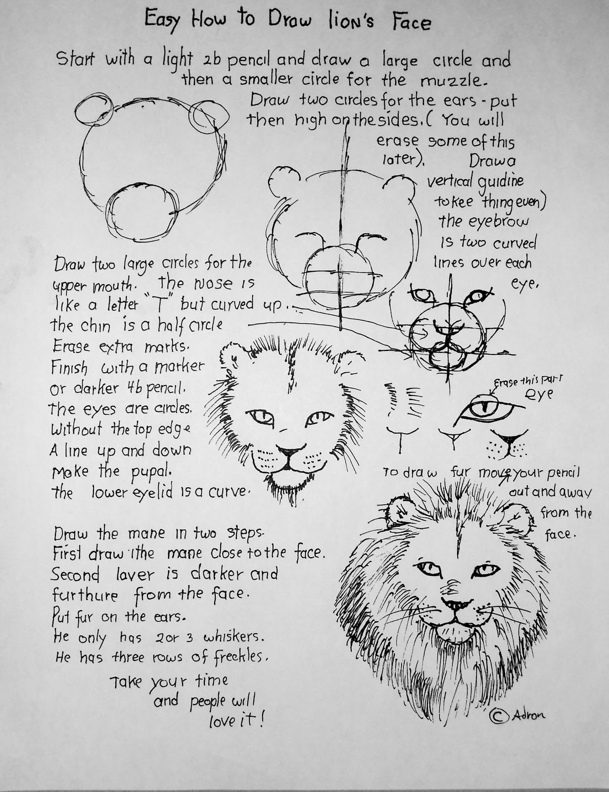 lion draw face learn